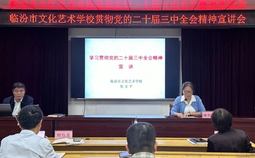 张安平书记强调,党的二十届三中全会是在以中国式现代化全面推进强国建设、民族复兴伟业的关键时期召开的一次十分重要的会议。学习好贯彻好党的二十届三中全会精神是当前和今后一个时期的一项重大政治任务。要以此次宣讲为契机,进一步加强政治理论学习,不断提高政治站位增强深化改革的思想自觉行动自觉。各支部、各科室要采取多种形式认真组织学习讨论,全面准确把握全会精神实质,把全会精神与学校的工作实际相结合,以改革创新的思维和举措,推动学校行政管理、教学质量不断提升,爱艺校、爱临汾、赢未来,为我市加快实现“三个努力成为”作出新的更大贡献。